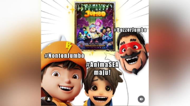 BoBoiBoy, Jumbo, dan Papa Pipi menyokong film Jumbo melalui unggahan BoBoiBoy. Foto: Instagram.
